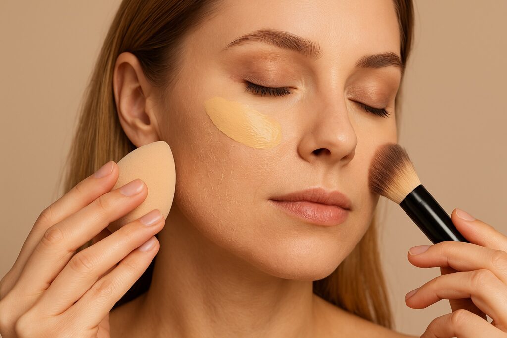 - Nanášajte v tenkých vrstvách – začnite s malým množstvom make-upu a podľa potreby pridávajte.